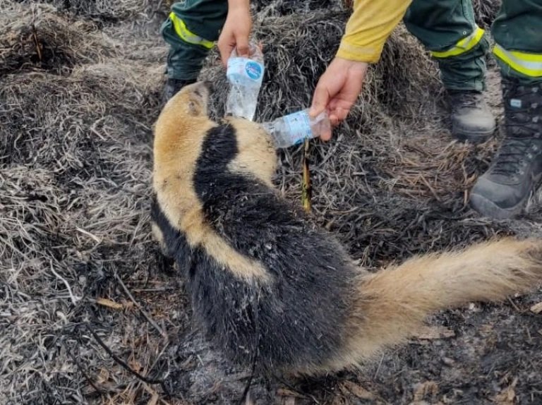 El animalito se encontraba acurrucado en un arbusto, tratando de salvar su vida de las llamas que ya lo alcanzaban, hasta que los brigadistas pudieron rescatarlo, darle agua y ponerlo a salvo.