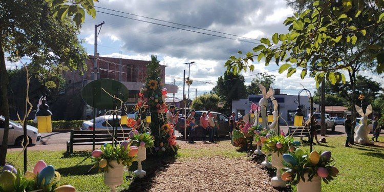 Desde el último fin de semana largo del mes de marzo, el paisaje urbano de Capioví se vio colmado de conejos, golosinas, huevos y toda la ornamentación alusiva a las Pascuas.