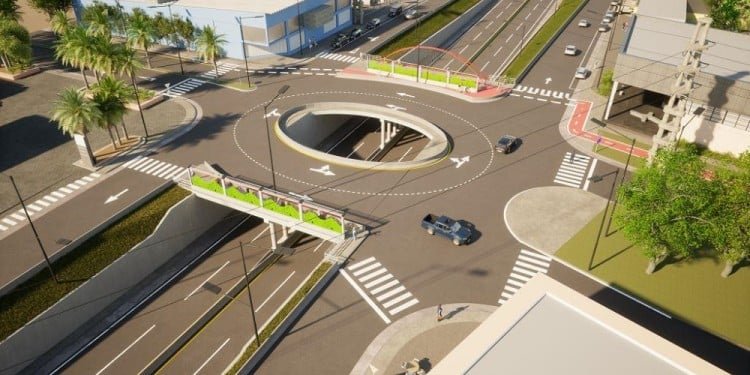 Debido al elevado tránsito en el sector, parte de la Travesía Urbana de Posadas, y del importante flujo vehicular de las avenidas San Martín y su continuación Alicia Moreau de Justo (ex ruta provincial 213), se planteó la ejecución del soterramiento de la vía principal y la ejecución de una rotonda a nivel del terreno, que vinculará las colectoras con las avenidas.