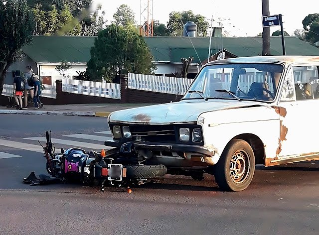 Dos heridos en un Choque Entre un Auto y una Moto en Pleno Centro de San Vicente