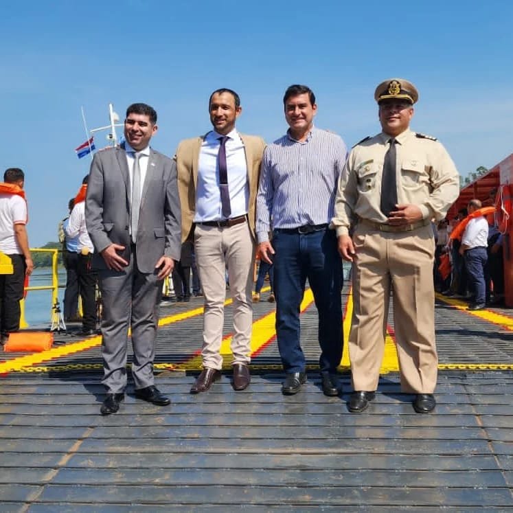 El intendente de Eldorado, Fabio Martínez fue el encargado de recibir a su par municipal de Mayor Otaño, Leonardo Morínigo y al jefe de Misión en el Consulado Paraguayo en Misiones, Magno Álvarez. Todos fueron parte de la comitiva que realizaron el primer viaje con la balsa que estará habilitado formalmente a los ciudadanos en los próximos días.