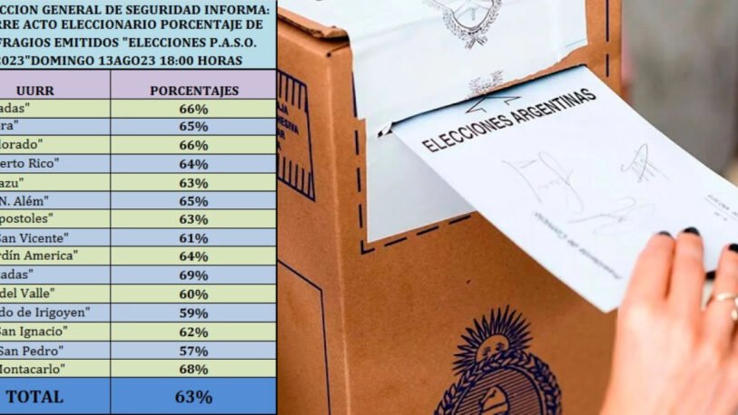 Según los datos de la Dirección General de Planeamiento y Estrategia de la Policía de Misiones, en la provincia votó cerca del 63% de los empadronados.