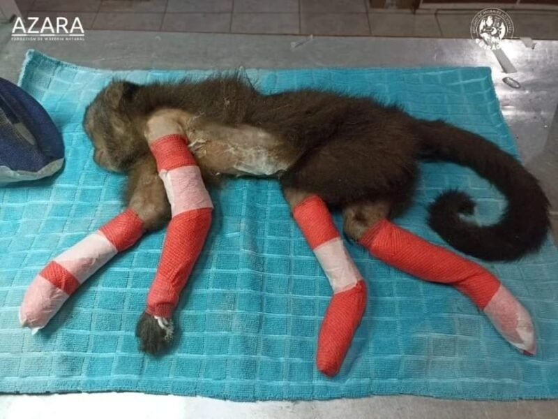 Este último jueves, ingresó al Centro de Rescate Fauna Silvestre “Güira Oga” un mono caí (Sapajus nigritus) con múltiples quemaduras producidas por cables eléctricos.