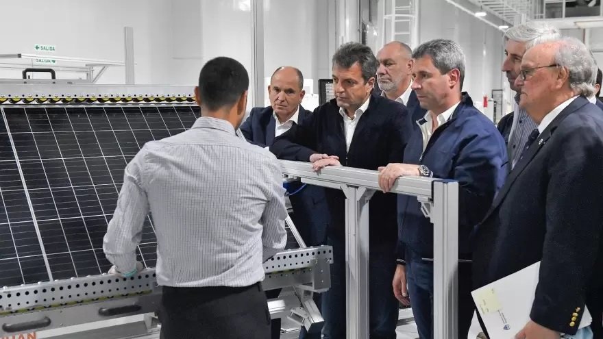 Massa y Uñac recorrieron una fábrica de paneles solares en San Juan. En el viaje, el ministro de Economía se interiorizó sobre la tecnología empleada en el proyecto sanjuanino.