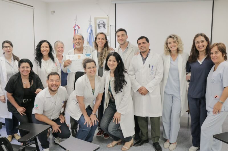 Luego de la ponencia, los profesionales del Madariaga realizaron un reconocimiento al Dr. Walter Cattaneo, Responsable y mentor del Servicio de Cuidados Paliativos del Hospital Escuela, quien se jubila de su profesión y deja de estar al frente del Servicio. Se le hizo entrega de una condecoración por los años de profesión al frente de Cuidados Paliativos.