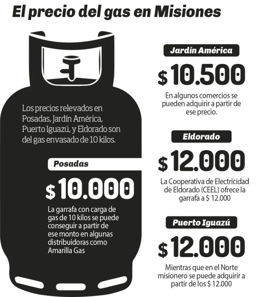 Por lo tanto, en el municipio jardinense, el distribuidor Gabriel Engel tenía la garrafa de 10 kilos a $4.300 el pasado viernes 26 de diciembre. Desde ayer ofrece a $10.500 y si lleva a domicilio cuesta $12.000.