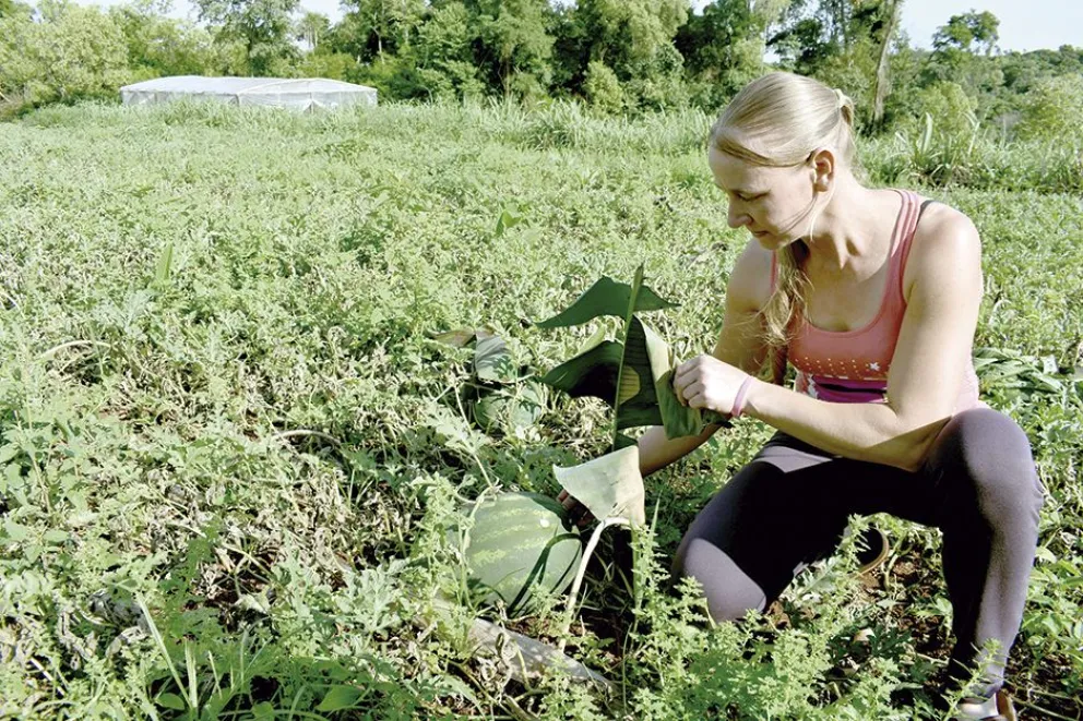 Hace tres años, la familia de Adela Grahl de Fracrán se animó al cultivo de sandía bajo cubierta, esto es, producir los plantines bajo invernadero hasta que tengan la cantidad de hojas para ser trasplantados, luego llevarlos al rozado y plantarlos sobre unos montículos de tierra que se extienden por varios metros, que forman líneos, los que son cubiertos con plásticos, como los tradicionales almácigos, hasta que pase el peligro que representan las heladas, mediados de agosto e inicios de septiembre.