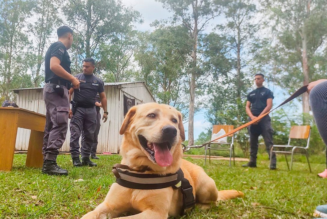 La fuerza incorporó perros especializados, como Golky. Lo entrenaron en Brasil y será clave en la seguridad carcelaria de Loreto. También conformaron guardias con canes en Oberá y Eldorado.