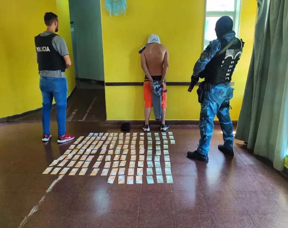 El detenido junto a otros cómplices que son intensamente buscados se llevaron una mochila con una mochila con dólares, reales y pesos
