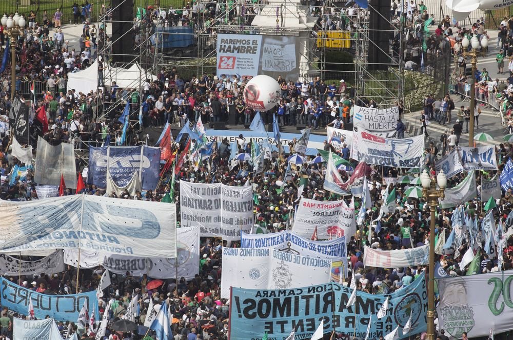 Desde que inició su gestión, se realizaron diversas movilizaciones a lo largo de estos meses. El paro del 24 de enero, el 8 de marzo, el 24 de Marzo, y recientemente la Marcha Federal Universitaria del 23 de abril; esto como primera jornada de un plan nacional defensivo definido por la CGT, ambas CTA y las organizaciones sociales.