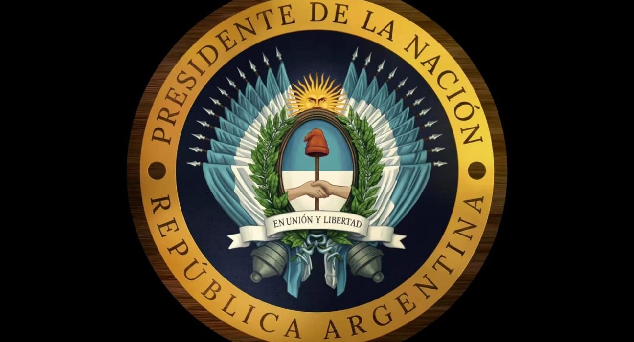 – Se reiteran las frases “Presidente de la Nación” y “República Argentina” de la imagen anterior, sobre una estructura dorada